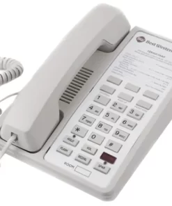 62 Single line 3 button speakerphone. Available in analog or SIP. Available in flat or curved handset. Flat handset available in optional colors, (black, red, silver, orange, and blue). Compatible with all major PBX’s. Full length faceplates for hotel name/logo and dialing instructions